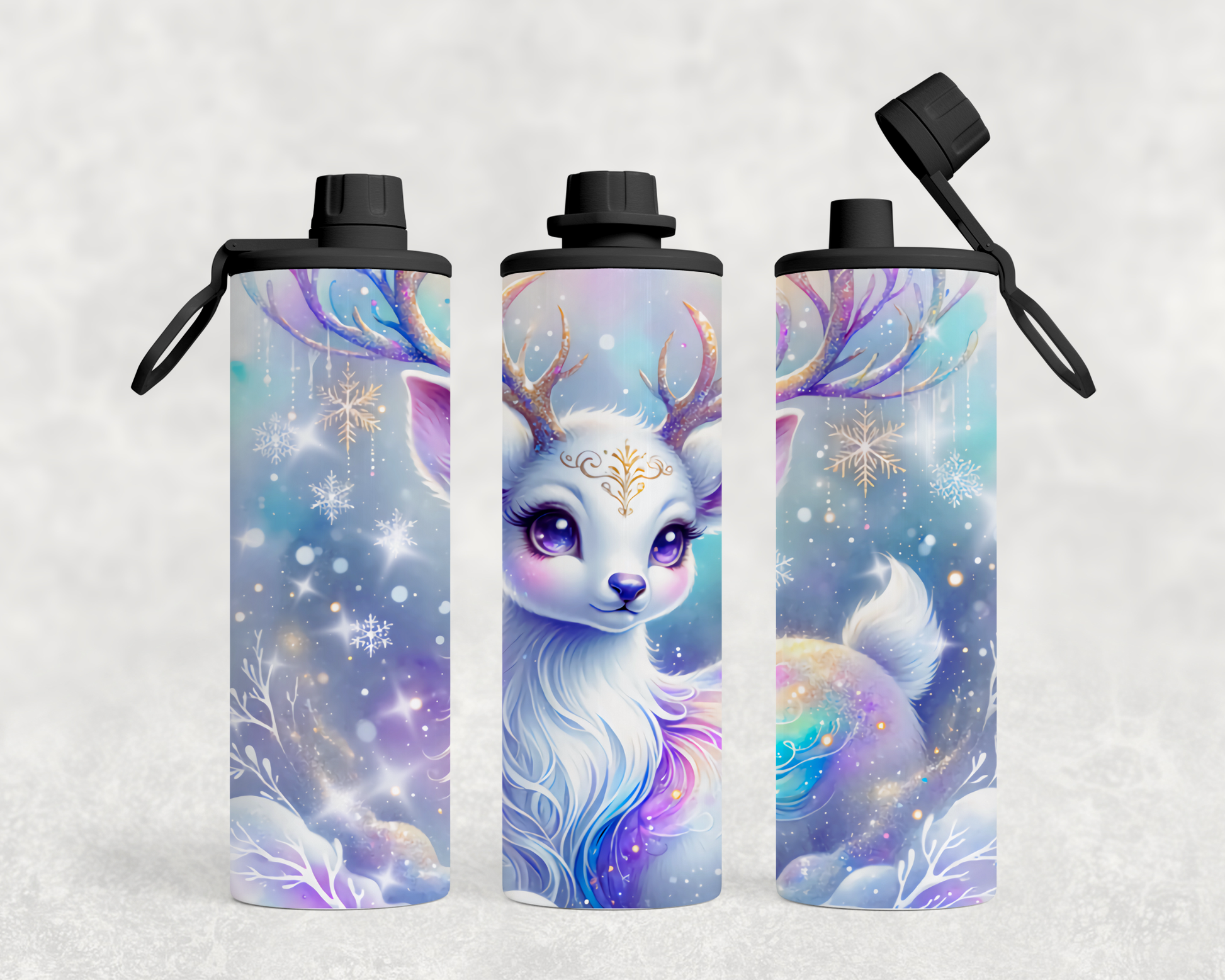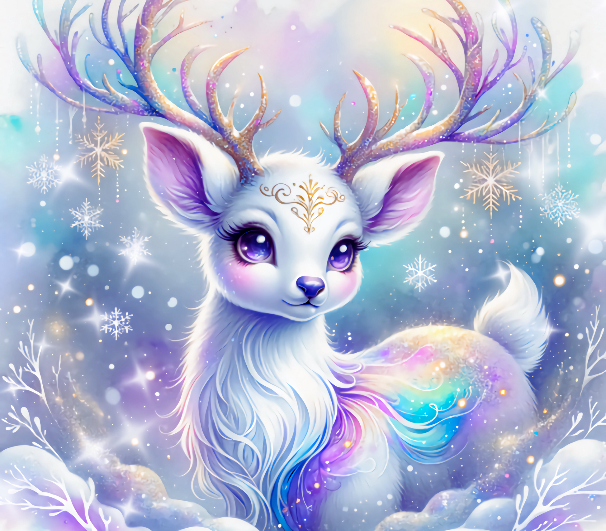 Dieses zauberhafte Rentier verzaubert mit seinen funkelnden Farben, glitzernden Hörnern und dem sanften Schimmer des Nordlichts. Es symbolisiert Ruhe, Hoffnung und die Magie des Winters – perfekt als Motiv für Tassen, Thermobecher oder Dekoartikel.