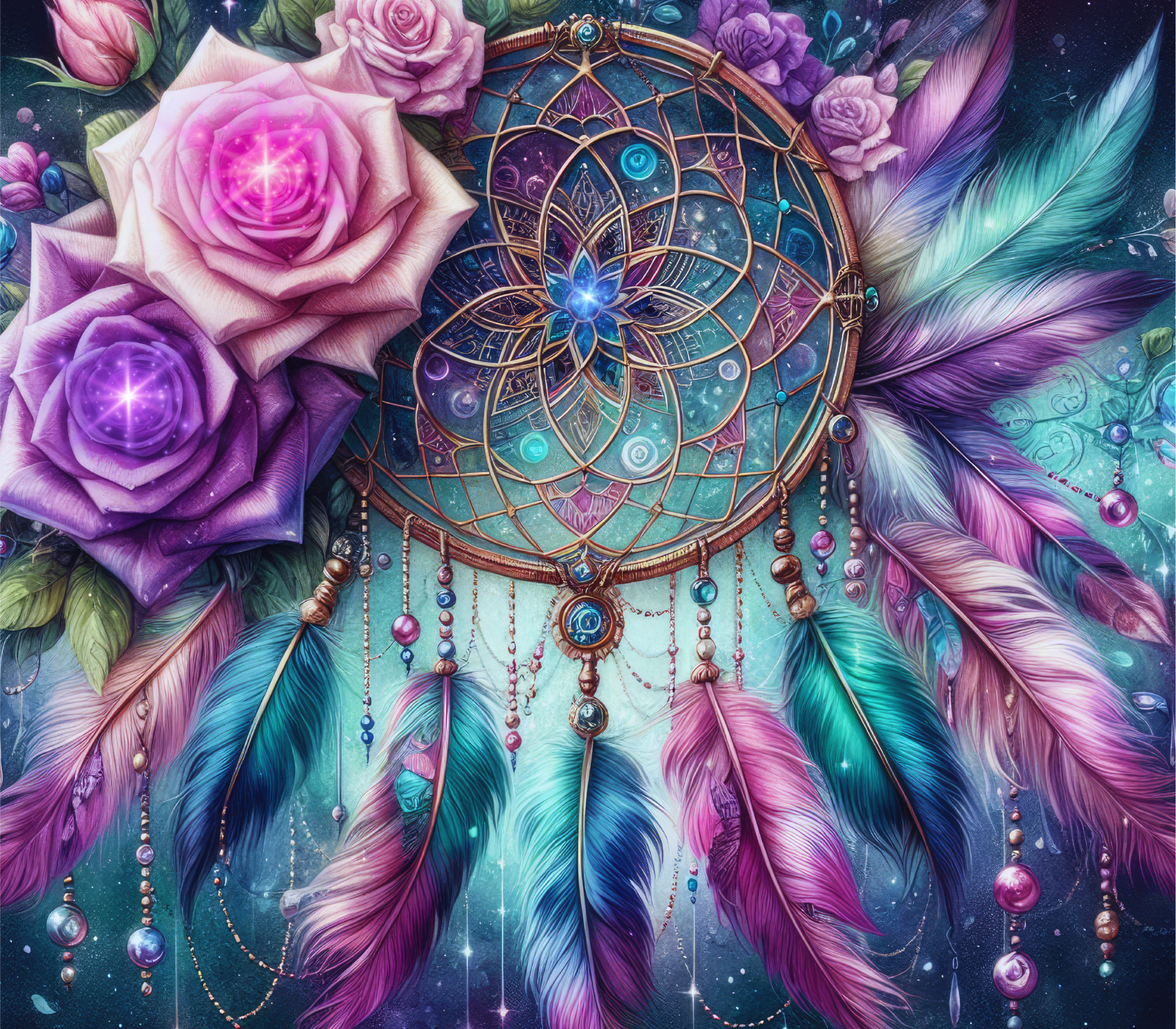 Der ThermoCup „Geist der Federn & Blumen“ kombiniert bunte Federn mit floralen Akzenten – ein fröhliches Design voller Leichtigkeit.